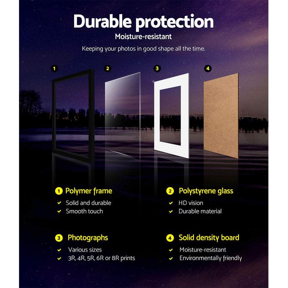 Every picture tells a story. And we are sure your extensive photo collection has lots to tell. So why not frame up the interesting ones on the wall and share the stories behind them to friends and family. You can do that beautifully with our charming Photo Frame Set. Available in a set of 3, our set allows your walls to be graced with fascinating stories and memorable moments from your treasured photographs. Arrange them in any way you like. Portrait or landscape, the framed photo feature wall is a conversational piece in its own right. Suitable for A3 photograph size, the frames feature a durable polymer construction with a polystyrene glass to keep your prints in good shape. The hardboard backing is also moisture-resistant. Hanging accessories are also included with your