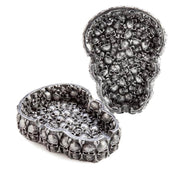 Skull-shaped incense burner made from lots of tiny skulls Also functions as an ashtray Curved notches on the edge to...