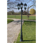 This dark green/black garden lamp is made of aluminium and clear glass. It is suitable for lamps with a maximum power of 100 Watts and is 230 cm high. The 3 lanterns will not only add a nice atmosphere to your garden, but it also make walking along your garden path or driveway a lot safer in the dark