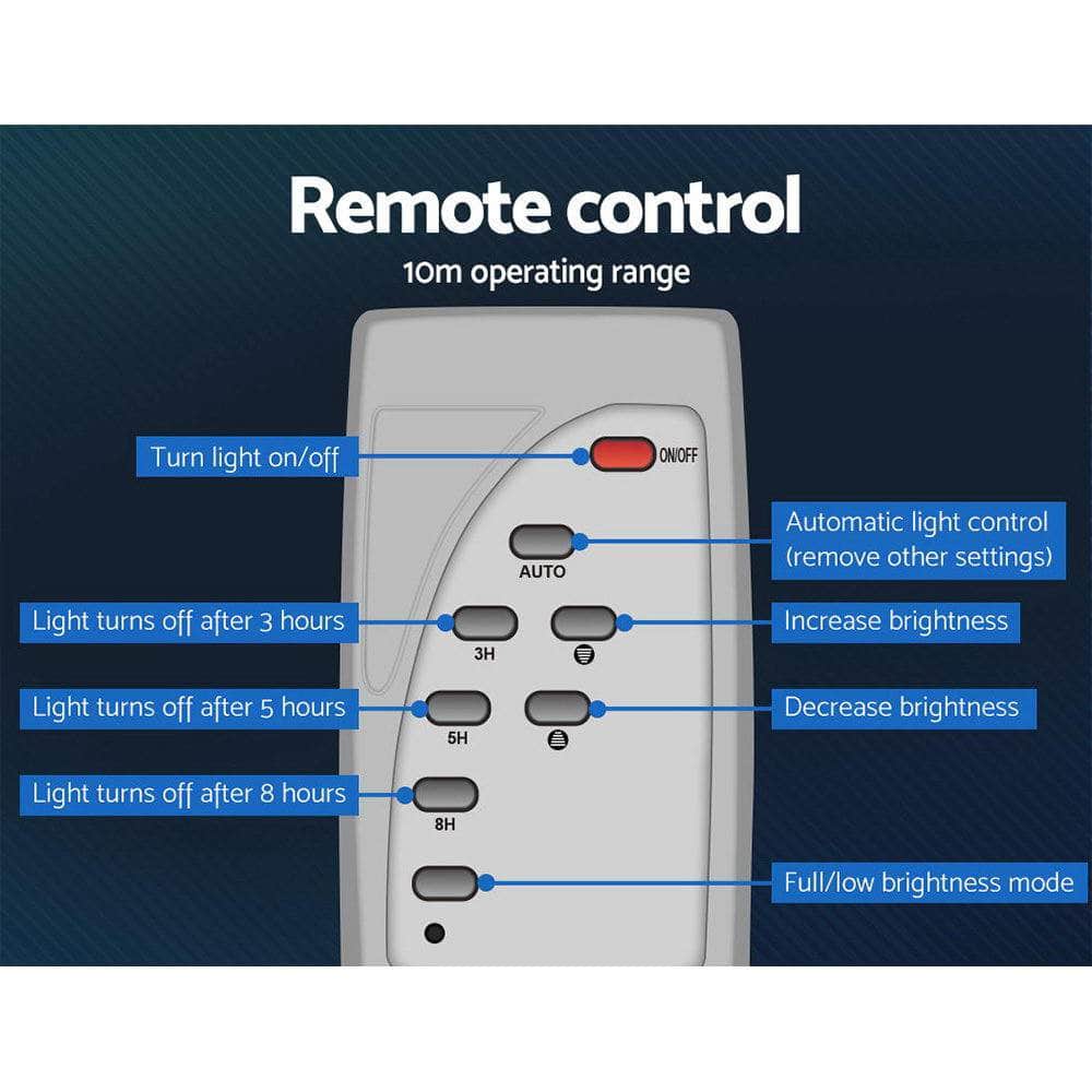 Our Solar Streetlight boasts a larger solar panel and powerful LED lights, resulting in brighter illumination and faster battery charging than most. With its reflector, the LEDs appear six times brighter, while the fully automatic and intelligent light control system ensures efficient energy use. During the day, the light sensor automatically charges the streetlight, and at night, it lights up, thanks to the radar motion sensor, which detects movement and adjusts the brightness accordingly. With the included remote control, you can set the mode to auto or adjust the timer and brightness to suit your needs.