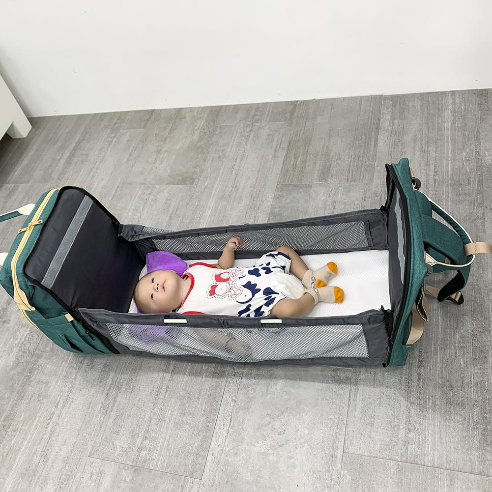 Foldable bed and mummy bag, convenient baby carriage design and pull rod strap design make it more convenient to travel.