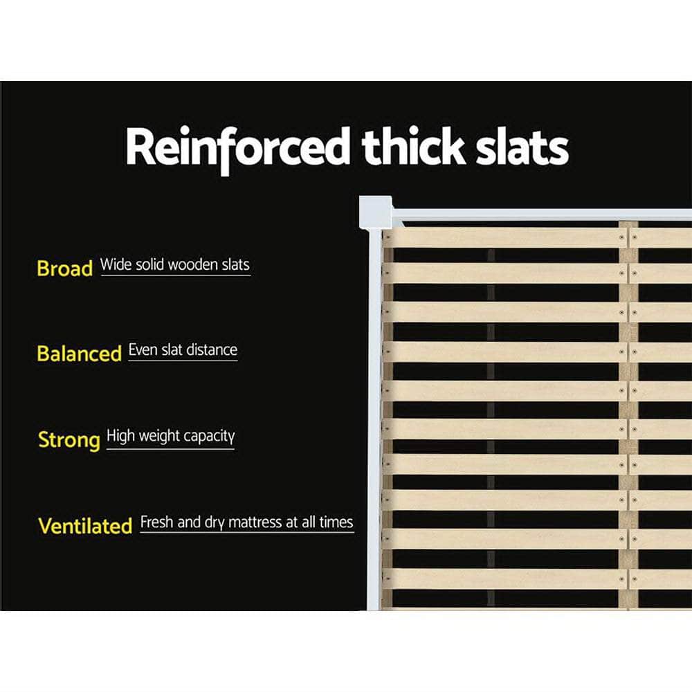 Bed Frame Double Solid Pine Wooden White Two-Tone with Plywood Slats