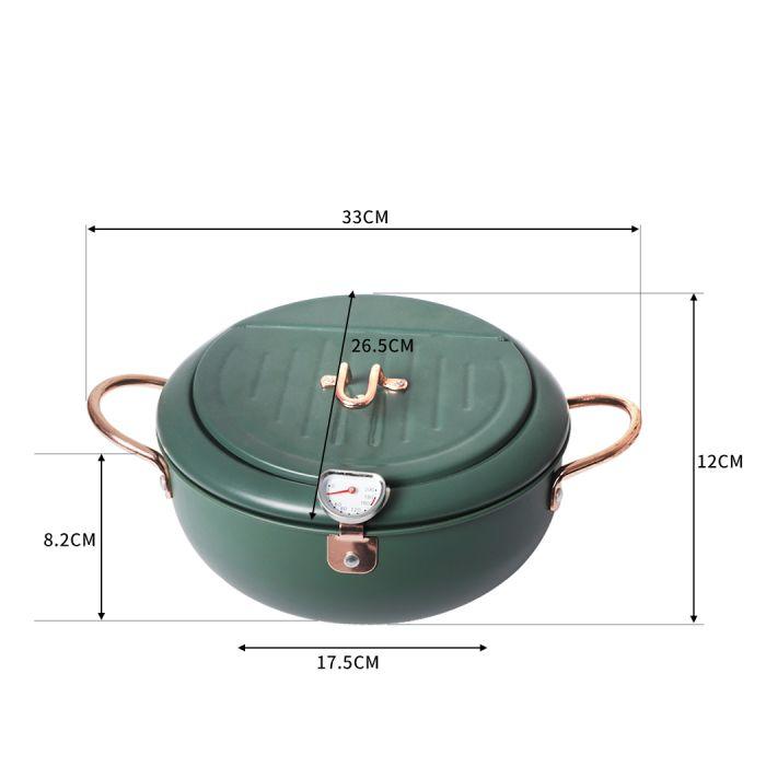 24cm Japanese Deep Frying Pan Pot with Thermometer Kitchen Tempura Fryer Green