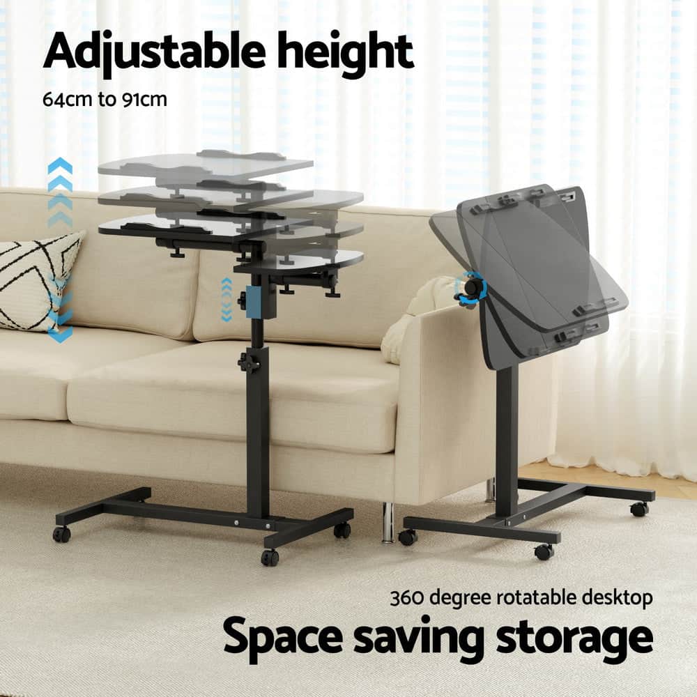 Freely adjust the tabletops to suit for different heights and seating. The four lockable castor wheels provide optimal manoeuvrability allo you to use your laptop from any space.