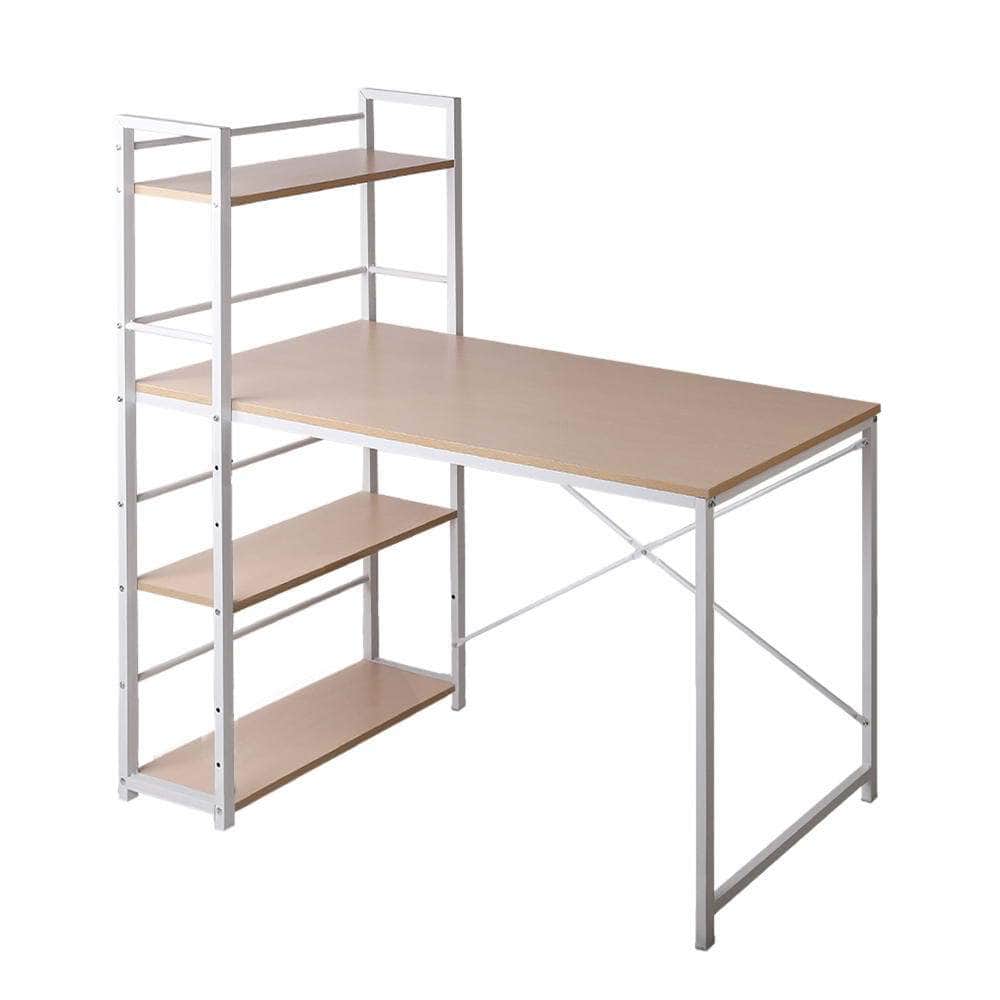 Artiss Metal Desk with Shelves - White with Oak Top