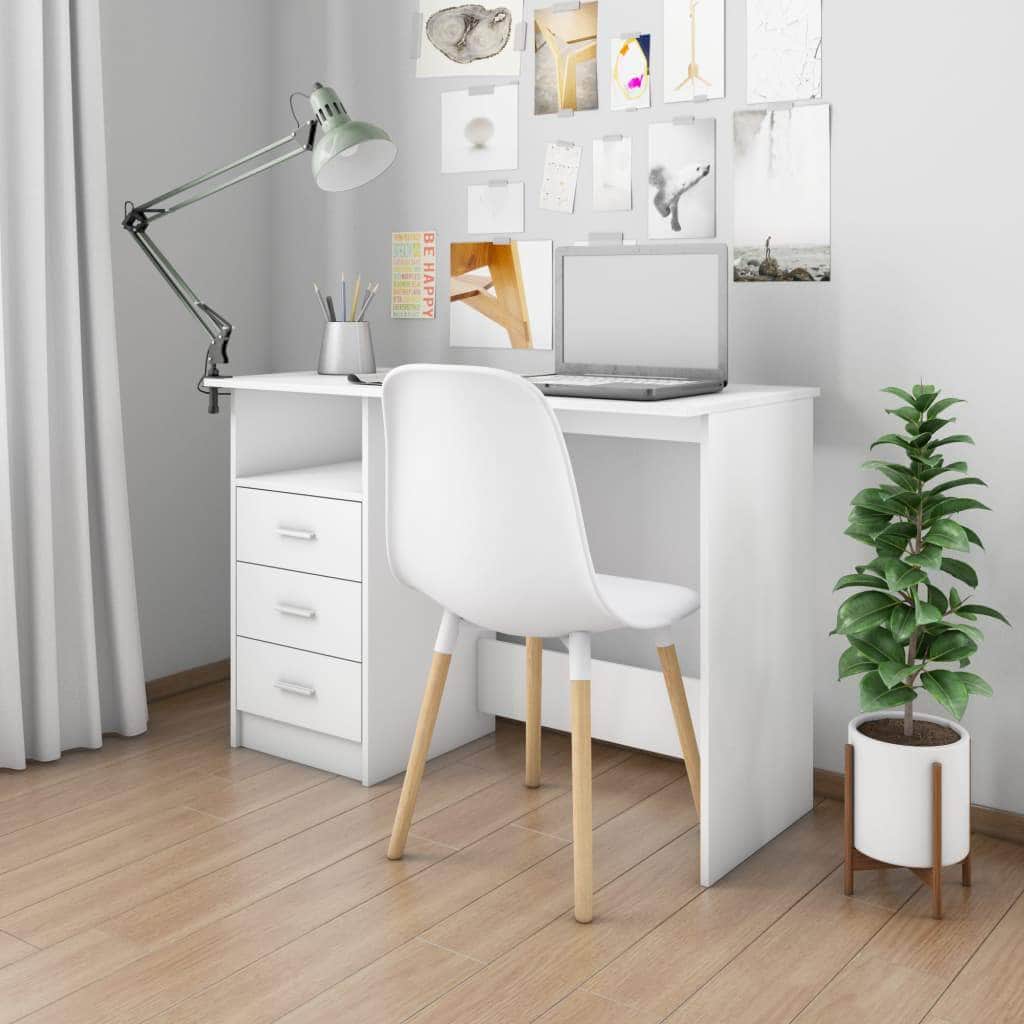 Our sleek and modern desk will be a practical addition to your study and working area! Made of quality engineered wood, this computer desk ensures sturdiness, durability and long service life. Our workstation is perfect for any tight office, dorm space, space-limited house, or even if you just prefer to manage the space you have! The 3 drawers and an open compartment on the side of the desk provide ample storage space for keeping your study supplies such as books, files or other useful items within reach. Additionally, the office desk is easy to clean with a damp cloth.