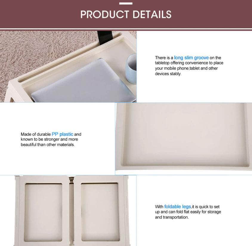 Multifunction Laptop Bed Desk with foldable legs for Home Office (White)