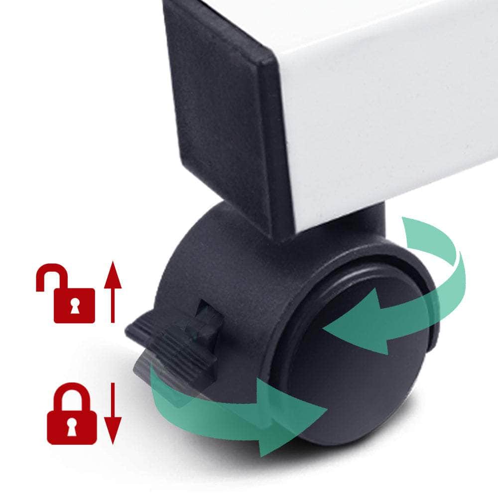 Sometimes you wish you have a ready desk at your beck and call. But moving your one desk is impractical. And that is where our Mobile Laptop Desk can help you explicitly. Designed to be strong and lightweight, our mobile laptop desk has ample desk area to work efficiently without feeling cluttered. The height is easily adjustable to your preference and the U-shape design fits in well with most furniture such as sofas and beds to get a comfortable sitting position. Better still, the desk top can now be tilted up to 3600 to suit your preferred use angle and also features an edge stopper to prevent things from falling off. The castor wheels rotate 360 ° and can be readily locked down in place. Or, if you like, remove the detachable wheels for a more permanent fixture. Not least, with its thick 17mm MDF board desk top and sturdy powder-coated U-shape steel frame, our mobile laptop desk is absolutely versatile to function as any type of table top.