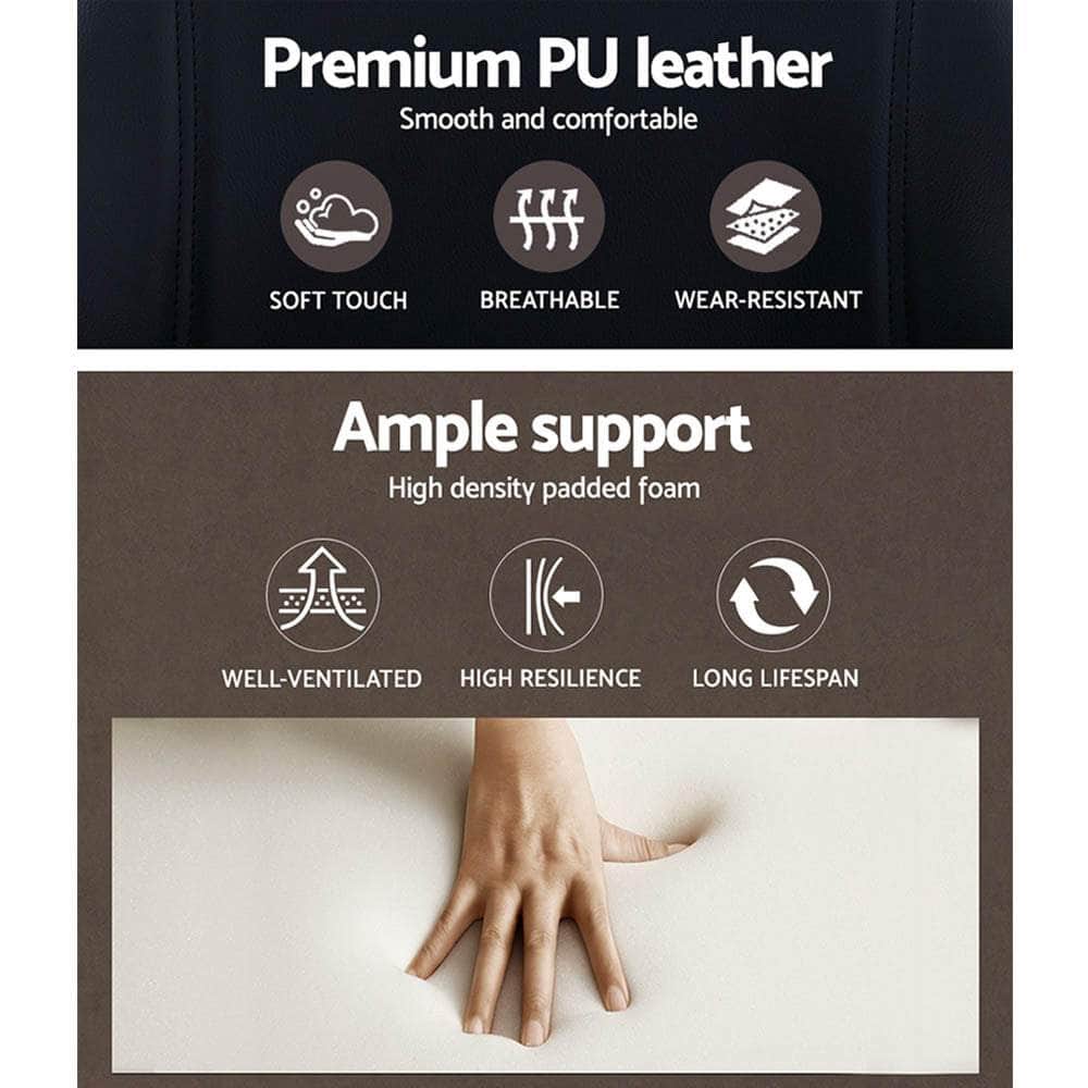 It’s a really nice chair. The leather is side and the wood grain looks nice. It’s comfortable. It was easy to put together. The only negative is a design issue whereby the headrest is a bit too low when sitting up straight. I am not a tall person and it is close to the base of my head. It’s okay when reclined though. I have back injuries and sit in this chair 8-10 hours a day without any pain.