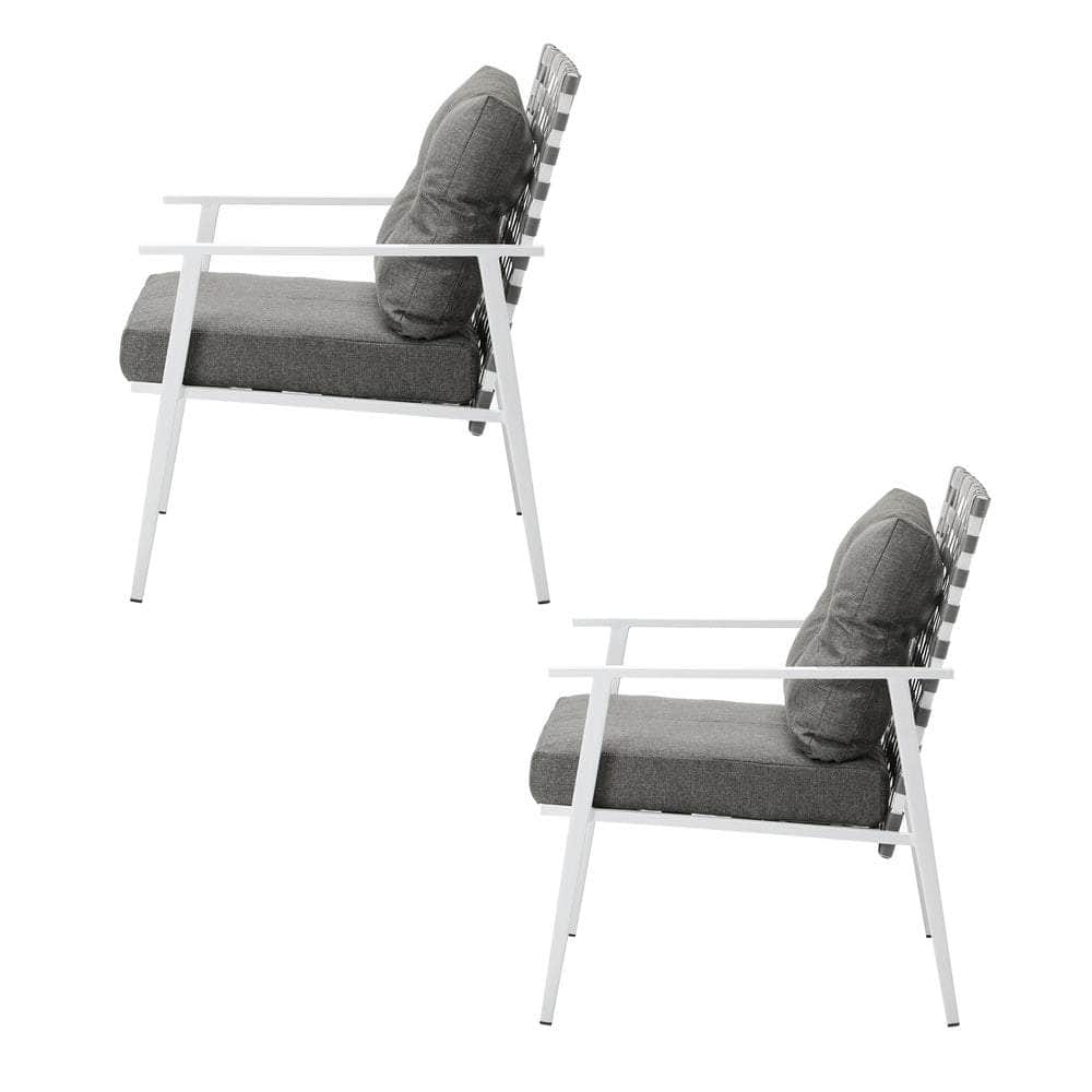 Living life to the fullest. Chilling out under the sun, moon and stars. Having a heartfelt tete-a-tete with your loved ones or a cherished friend. Simply pursuing and enjoying life that’s meant to be. And the Outdoor 2-pc Armchair Set is ready to be there at home with you. Stylish. Contemporary. Beautiful. It has all the hallmarks of chic outdoor furniture that resonate with your discerning lifestyle. Sit back and feel the comfort of the well-padded cushioned seats and relax your arms on the smooth and supportive armrests. Have your lattes, your favourite brews and savour some yummy munchies to while the moments away. But how does it stand up to the harsh and sometimes fickle Australian weather? No worries mate as it’s all weather-resistant with a powder-coated metal seat frame to add strength and durability for robust use. Not least, this twosome setup also looks fabulous with any indoor eclectic styling ideas that you may have. Convinced that this delightful outdoor package is for you? Click on the Buy option and soon you’ll be chairing good times with the Outdoor 2-pc Armchair Set at your side.