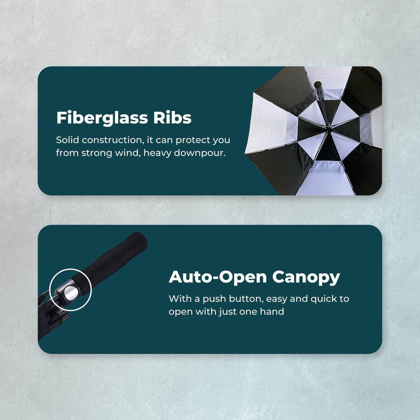 With a 62-inch Oversize canopy, Comfortable grip, Solid Fiberglass ribs, it can protect you from strong wind, heavy downpour, or even under the sun.
