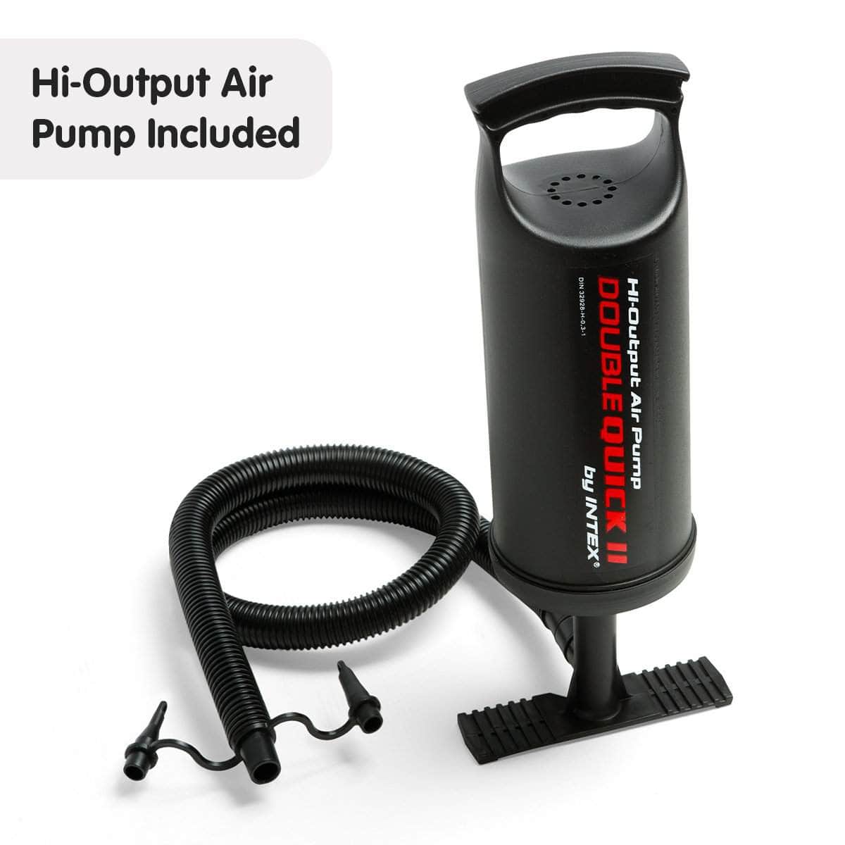 This kayak features grab lines on both ends and a cargo net at the front for extra storage. It also comes with an aluminum paddle, a storage bag, and an Intex high-output hand pump for quick inflation and deflation.