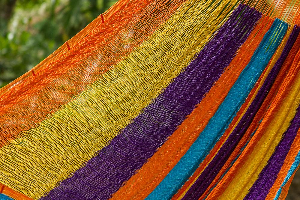 Mayan Legacy - Mexican Nylon Hammocks are an excellent option to hang outdoors at weather protected areas.