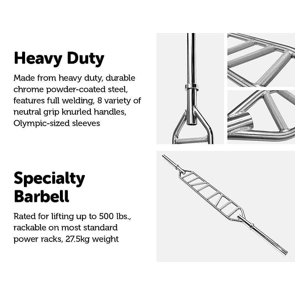 Among the many applications of this specialty barbell are the bench press, floor press, lockouts, JM press, and shoulder press.