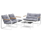 Living life to the fullest. Chilling out under the sun, moon and stars. Alfresco dining. Sharing cherished moments with family and friends. Celebrating milestones and successes and everything else in between. Simply pursuing and enjoying life that’s meant to be. And the Outdoor Patio 4-pc Lounge Set is ready to be there at home with you. Stylish. Contemporary. Beautiful. It has all the makings of chic outdoor furniture that resonate with your discerning lifestyle. Sit back and feel the comfort of the well-padded cushioned seats and relax your arms on the smooth composite wood/plastic armrests. Have your lattes and savour that delicious food platter served on the matching coffee table. Not enough space on the glass table top? There’s more real estate under the coffee table with a handy shelf for more delectable goodies and drinks to while the moments away. But how does it stand up to the harsh and sometimes fickle Australian weather? No worries mate as it’s all weather-resistant with a powder-coated metal seat frame to add strength and durability for robust use (we know how things can get pretty rowdy with fun times!). Not least, this foursome setup also looks fabulous with any indoor eclectic styling ideas that you may have. Convinced that this delightful outdoor package is for you? Click on the Buy option and soon you’ll be having the times of your life with the Outdoor Patio 4-pc Lounge Set at your beck and call.