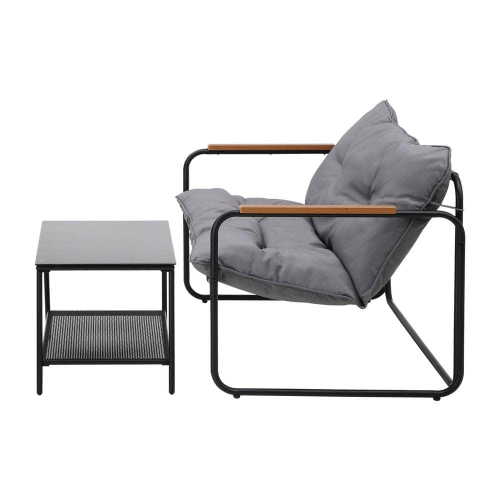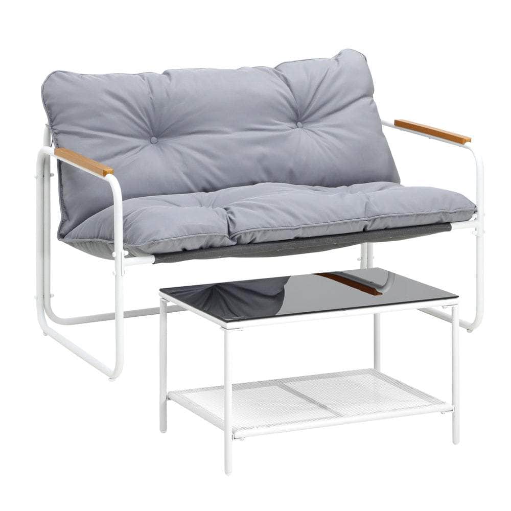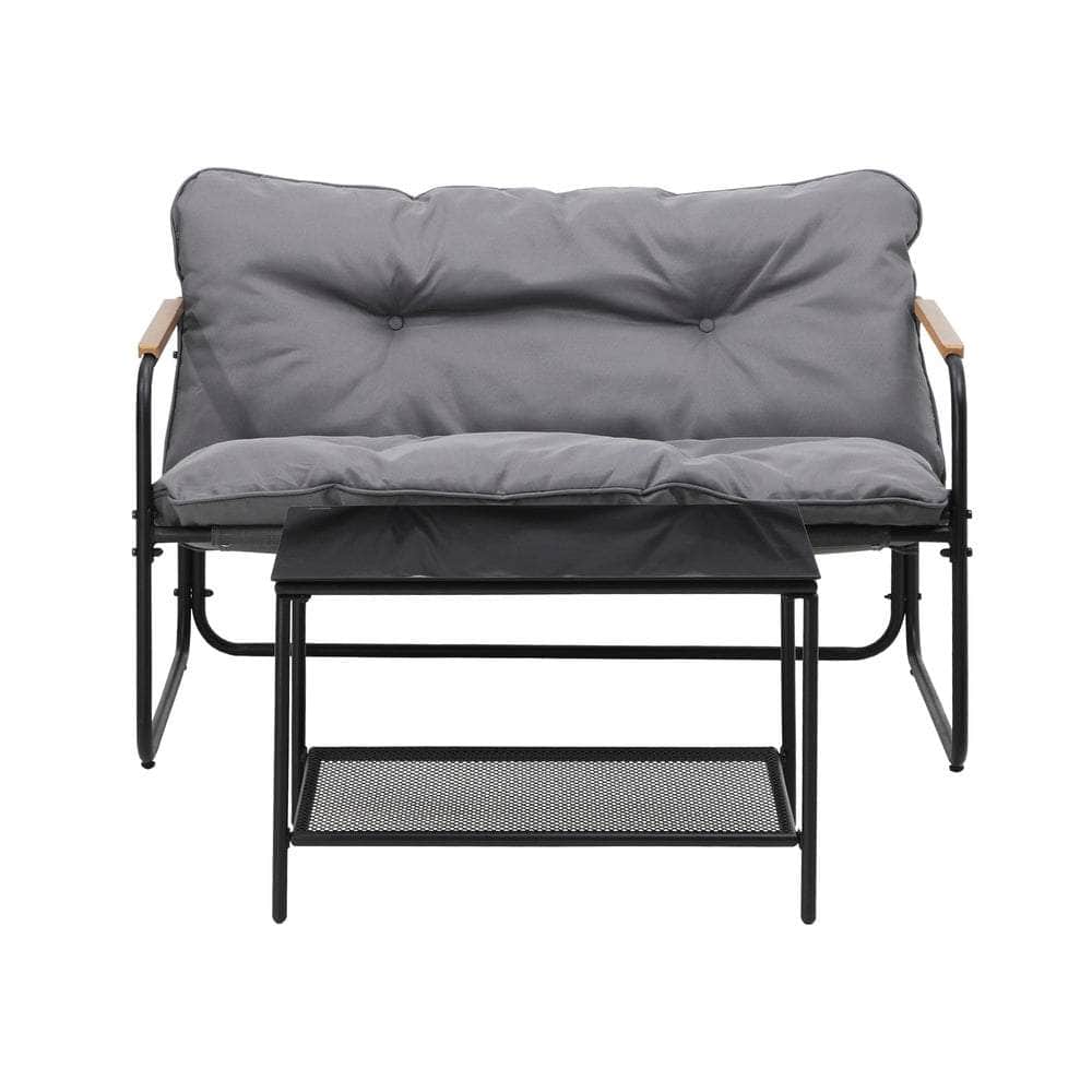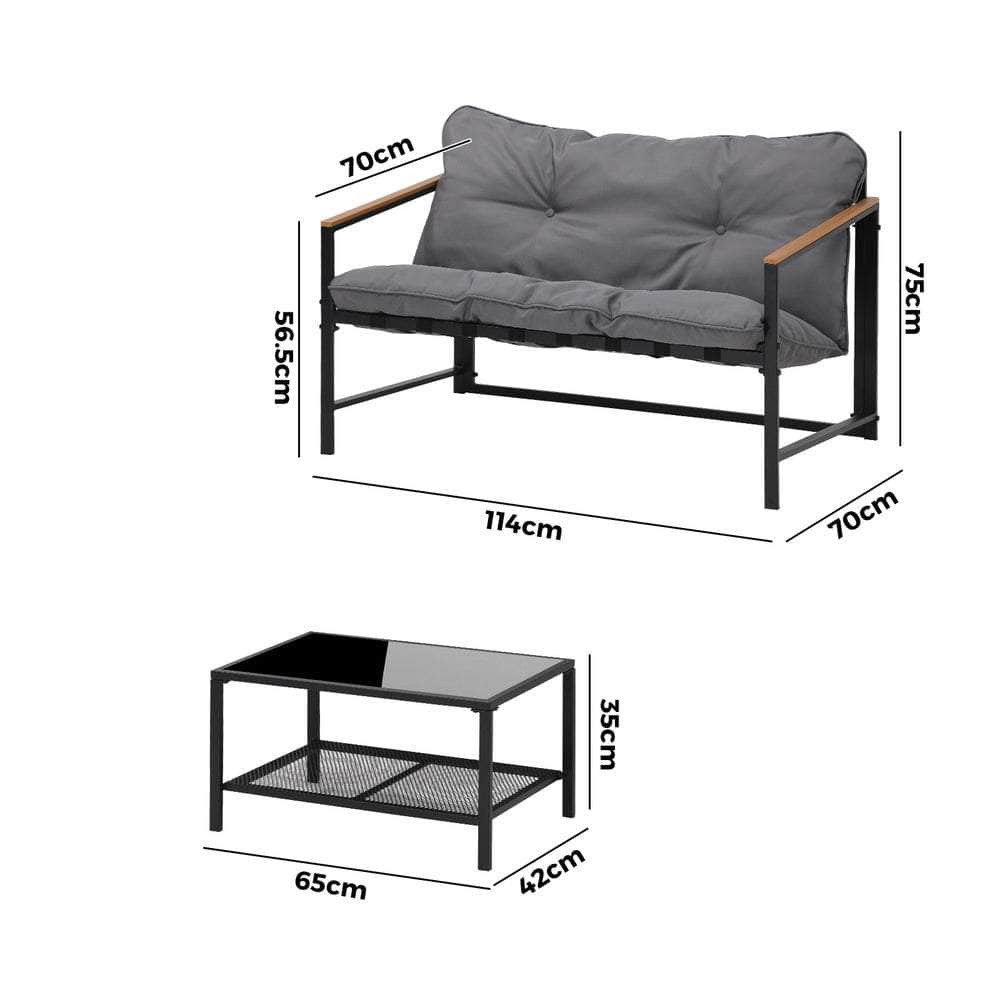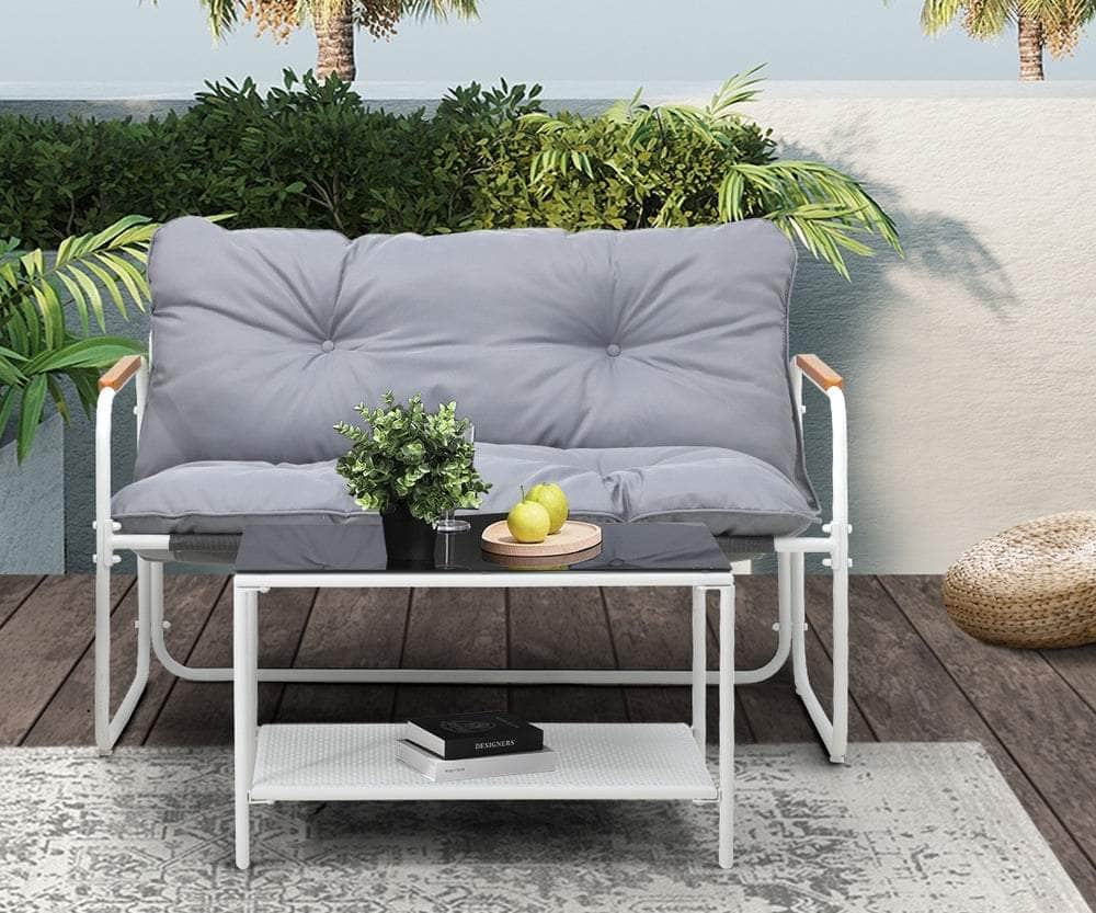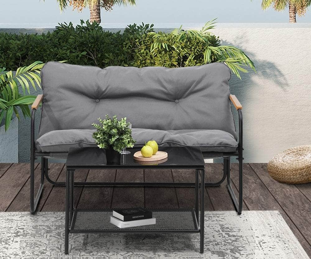 Living life to the fullest. Chilling out under the sun, moon and stars. Alfresco dining. Enjoying cherished tete-a-tete and wonderful conversation. Celebrating milestones and successes and everything else in between. Simply pursuing and liking life that’s meant to be. And the Outdoor Patio 2-pc Lounge Set is ready to be there at home with you. Stylish. Contemporary. Beautiful. It has all the makings of chic outdoor furniture that resonate with your discerning lifestyle. Sit back and feel the comfort of the well-padded cushioned seats and relax your arms on the smooth composite wood/plastic armrests. Have your lattes and savour that delicious food platter served on the matching coffee table. Not enough space on the glass table top? There’s more real estate under the coffee table with a handy shelf for more delectable goodies and drinks to while the moments away. But how does it stand up to the harsh and sometimes fickle Australian weather? No worries mate as it’s all weather-resistant with a powder-coated metal seat frame to add strength and durability for robust use. Not least, this twosome setup also looks fabulous with any indoor eclectic styling ideas that you may have. Convinced that this delightful outdoor package is for you? Click on the Buy option and soon you’ll be having the best of company with the Outdoor Patio 2-pc Lounge Set in attendance.