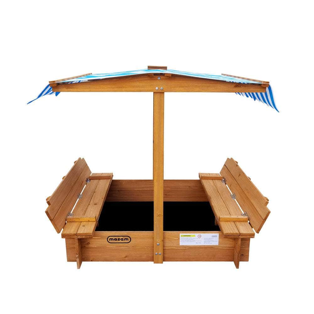 Spring and summer are the best seasons for outdoor play! Our Mazam Sandpit comes in handy for your kids to spend hours of outdoor fun by building sandcastles and encourage the little ones to get creative in building things. Mazam Sandpit is designed to keep your kids under safe play environments with UV-resistant canopy, smooth surfaces and edges and internal ground sheets. You can be reassured that they are protected by UV-resistant shade and the ground sheet that prevents grass and weed from growing into the sand play area. Bring your little ones to outdoor play for creating and learning time with Mazam Sandpit.;Solid Fir wood construction
