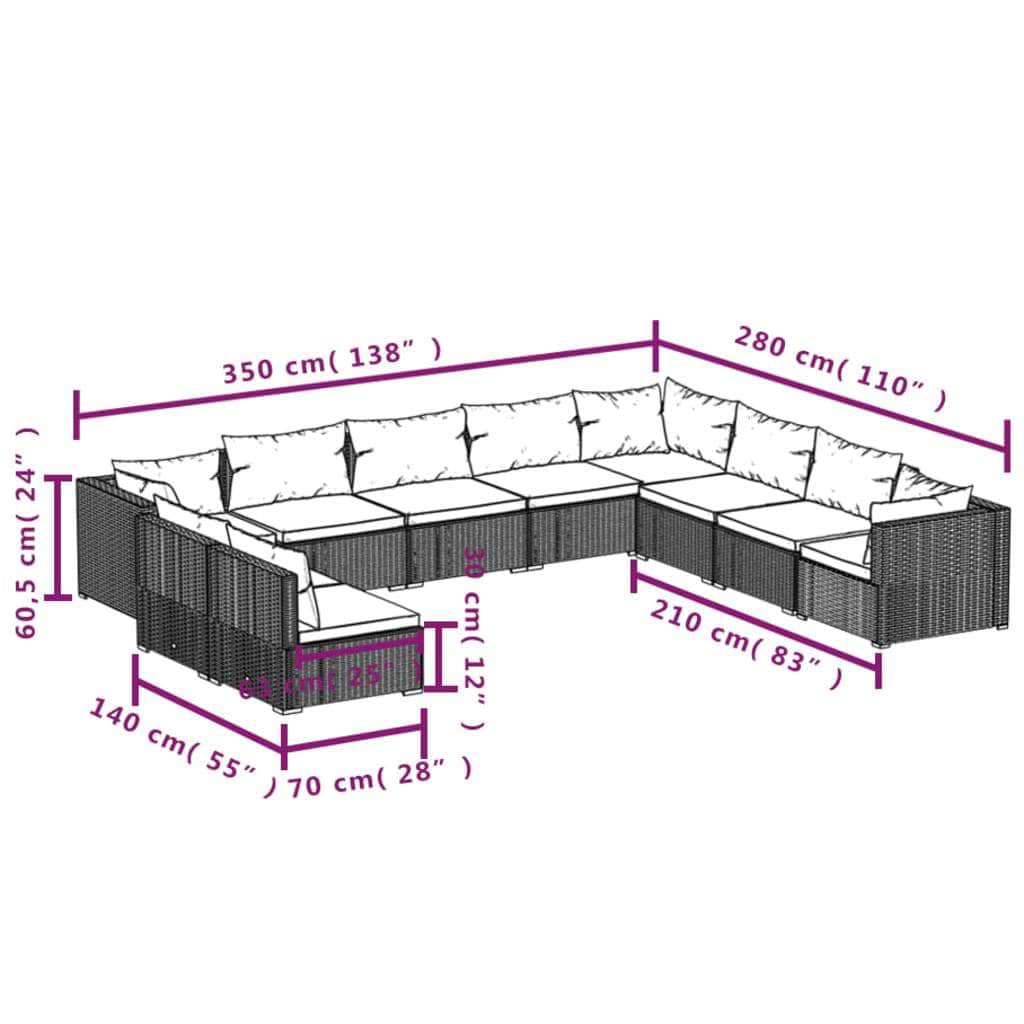10 Piece Garden Lounge Set Black with Cushions Poly Rattan