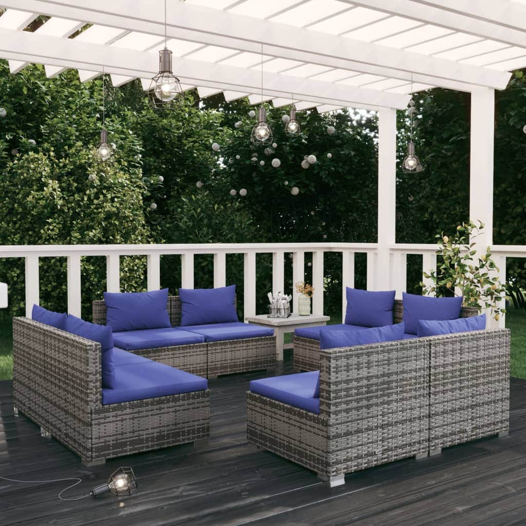 8 Piece Garden Lounge Set with Cushions Poly Rattan