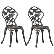 This set of bistro chairs will make a decorative addition to your garden, patio, or balcony with their ornate floral details. It will be a pleasure to have a cuppa with your friends sitting on these chairs! The bistro set is made of cast aluminium, which is weather-resistant and highly durable. The cast iron legs add to the sturdiness of the set. The detailed floral pattern will add a romantic touch to any garden, patio or conservatory. Delivery includes 2 bistro chairs.