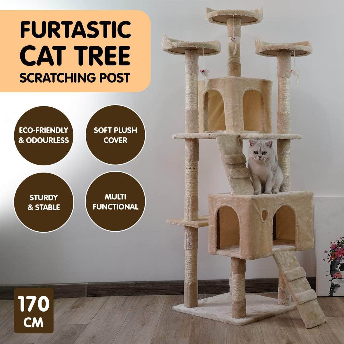 170cm Cat Tree Scratching Post Beige/Dark Grey/Silver Grey