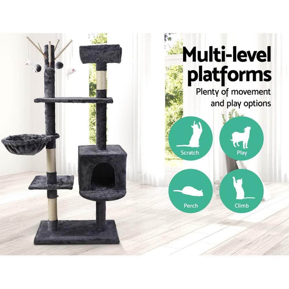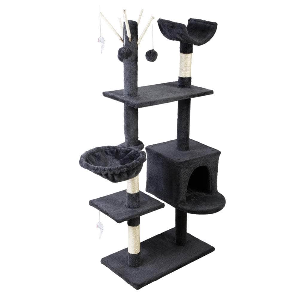 Your ever-active cat needs a place to let it be itself. And the Umon Cat Tree is just the perfect thing to cater to the natural instincts of your feline friend. The 140cm tree features a sleeping cradle, side hammock, cosy bed cube, hanging toys and platforms to allow your pet to jump, hop, skip, climb, scratch, rest and nap with ease. And as for its claws maintenance, the fully wrapped sisal-covered poles are ideal for your pet to practice her daily regime of keeping its claws in good shape. Besides, it also helps to keep your pet off your expensive furniture too. Made from quality wood and natural sisal, the entire unit is both pet and eco-friendly with durable and longlasting qualities. Best of all, the cat tree is upholstered with a plush velvety surface for extra comfort and style.