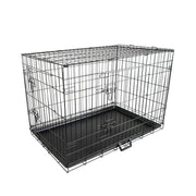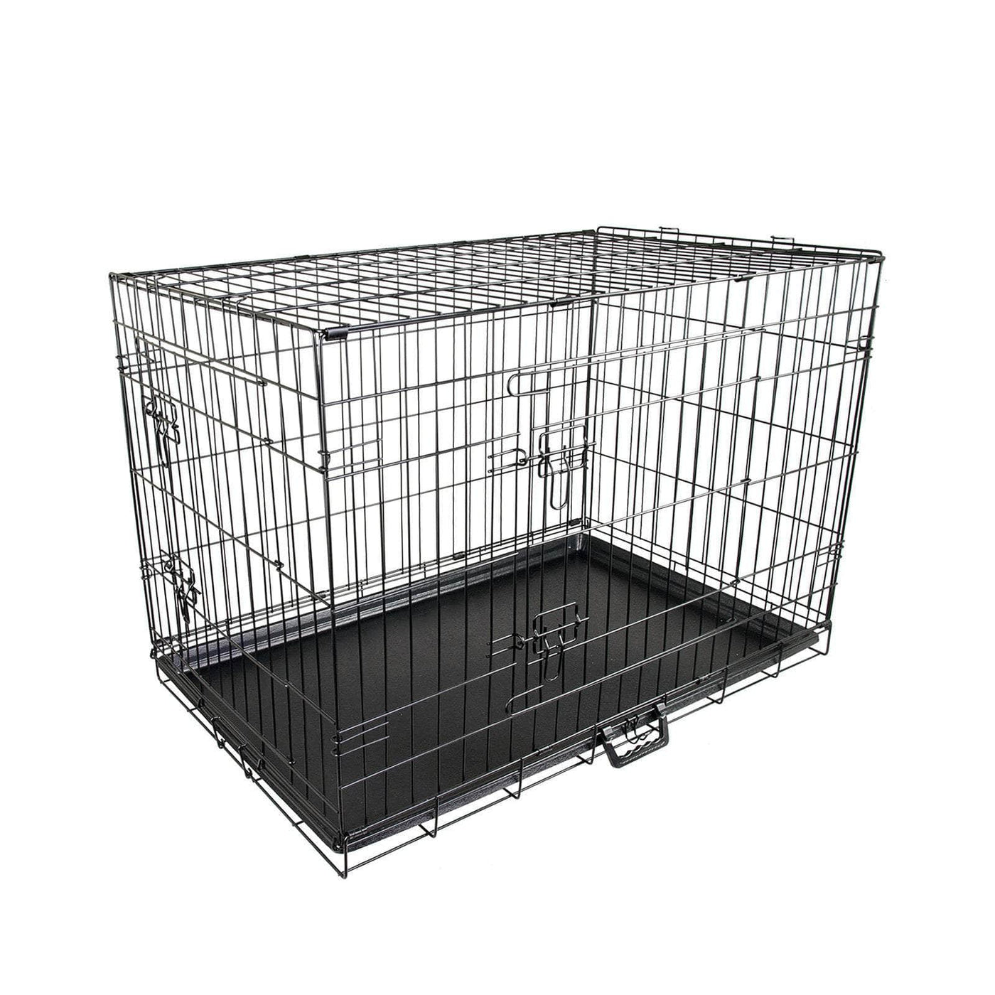 This convenient wire dog crate feature double access doors that provide easy access for your dog to easily enter and exit, as well as dual safety locks on each door to keep your pup securely inside. Built with quality sturdy wire construction with black powder-coated finish. The slide-out / removable plastic tray for easy cleaning.