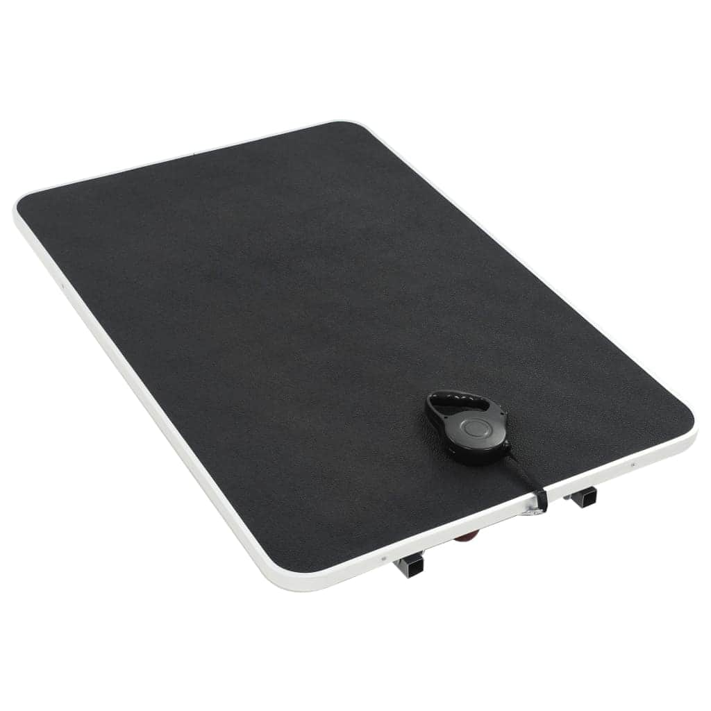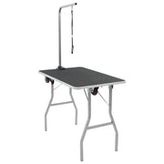 This portable pet grooming table is perfect for home and mobile groomers.The professional adjustable grooming table enables you to perfectly position your furry friend for bathing, trimming, drying, grooming, and so on. It features a non-slip tabletop and a powder-coated iron frame with an adjustable grooming arm and noose. The table top with an anti-skid rubber surface is soft and safe for you pets.The adjustable grooming noose restrains pets safely and features an improved locking clasp. The grooming arm is easy to demount when not in use for easy storage and transport. Moreover, this dog grooming table has castors for easy transport. An assembly tool is included.