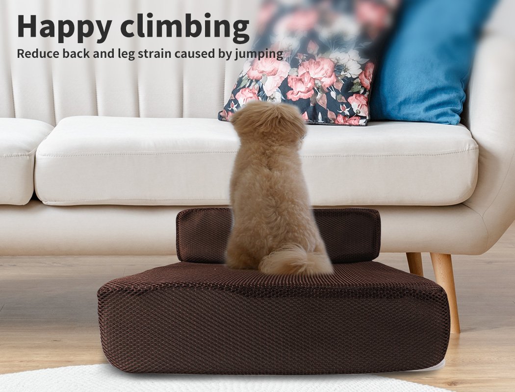 PaWz Pet Stairs with lengthening design can help them get safely up on the couch or their favorite spot on the bed. These sturdy stairs are made with high-density foam which are hardening without collapse. Anti-slip silica gel points are used at the bottom to effectively prevent sliding and ensure safety .What is more, It is foldable and can create a higher staircases by adding more stairs on top.Washable and detachable cover for easy cleaning.Let your pet access all their favorite places to snuggle and slumber with this pet stairs.