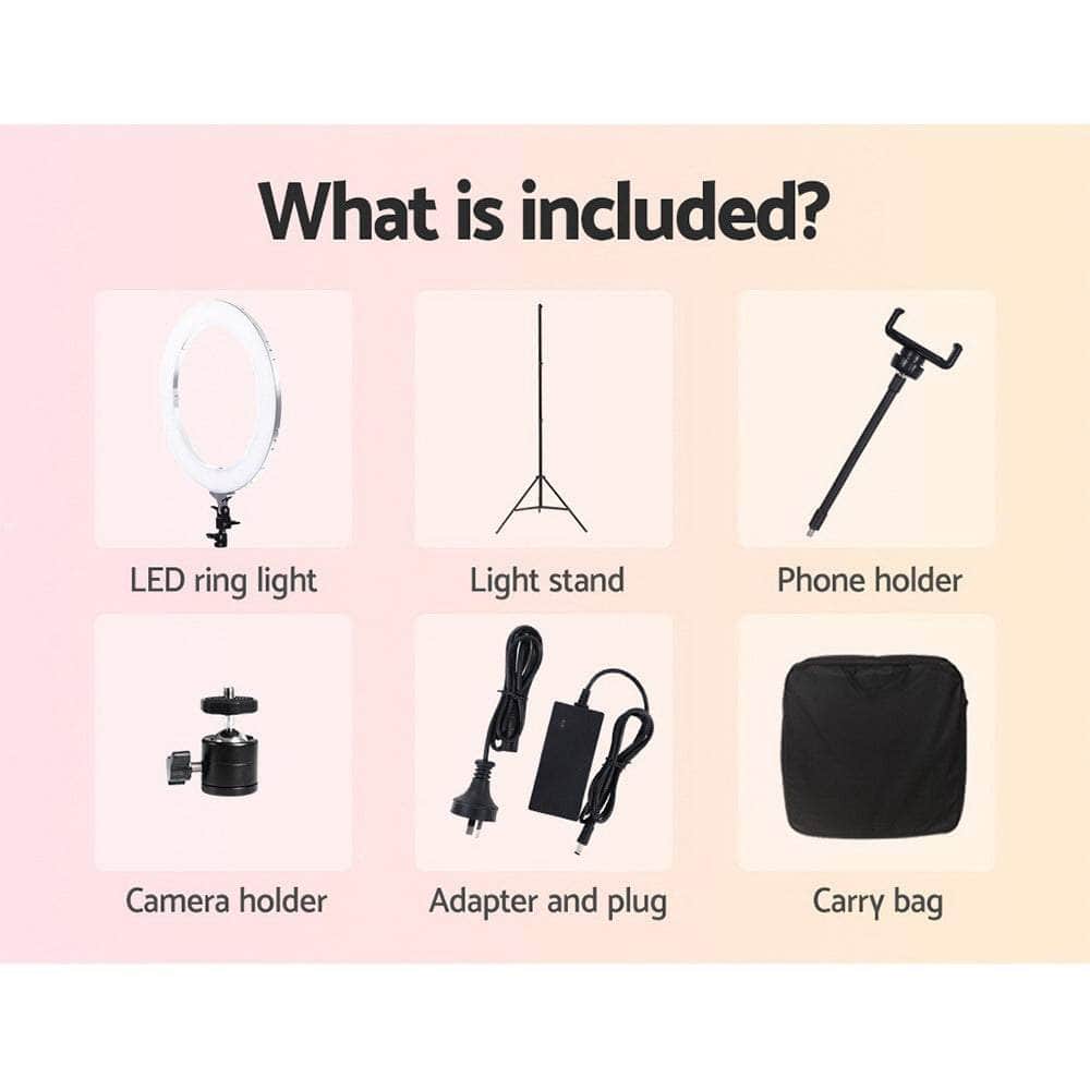 For the serious shutterbug or enthusiastic hobbyist who is into portrait, beauty and make-up or macro photography, our LED Ring Light is just the accessory you need to capture some great up-close shots. Suitable for mounting smart phone cameras with the supplied holder, our 19'' ring light provides adequate diffused lighting with the ability to vary the intensity of the 432 LED bulbs with the dimmer switch. With the knobs, you can control brightness and colour temperature of between 2700K and 5600K to get your preferred lighting and accurate hues for the subject matter. The 5800 lumens ring light fits easily on any standard camera stand and is fully rotatable and height adjustable from 80cm to 190cm. The light also comes with a bonus carry bag for easy transportation.