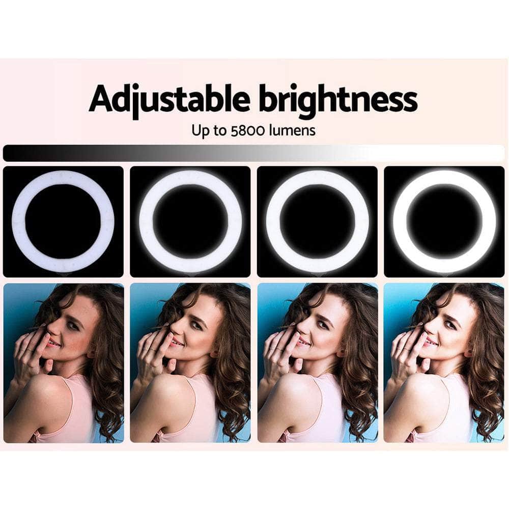 For the serious shutterbug or enthusiastic hobbyist who is into portrait, beauty and make-up or macro photography, our LED Ring Light is just the accessory you need to capture some great up-close shots. Suitable for mounting smart phone cameras with the supplied holder, our 19'' ring light provides adequate diffused lighting with the ability to vary the intensity of the 432 LED bulbs with the dimmer switch. With the knobs, you can control brightness and colour temperature of between 2700K and 5600K to get your preferred lighting and accurate hues for the subject matter. The 5800 lumens ring light fits easily on any standard camera stand and is fully rotatable and height adjustable from 80cm to 190cm. The light also comes with a bonus carry bag for easy transportation.