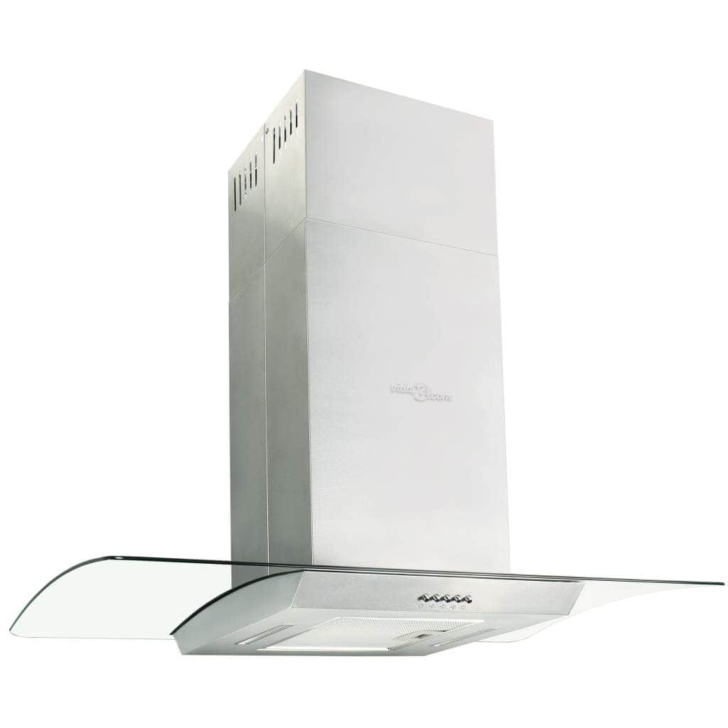 Our low-noise and powerful island range hood is ideal for effectively extracting smoke, grease, moisture and even heat from your kitchen. Its stainless steel housing is combined with a sleek, curved tempered glass canopy, giving your kitchen a stylish and modern look. This chimney hood is equipped with a 3-layer washable aluminium grease filter to protect the inside of the extractor hood and the exhaust pipe from grease. The built-in LED lights provide excellent illumination, to help with cooking and also to create a nice ambience in your kitchen. The extractor hood has 3 variable speeds to ensure you have a full control over the extraction rate and a charcoal filter that will help purify the air and release the cleaned air back into the kitchen, whilst external extraction transfers cooking odours to outside with the help of the included exhaust pipe. Assembly is easy. The island hood fits well in an open kitchen with a cooking island as a standalone hood, but can also be used if you do not have a cooking island.