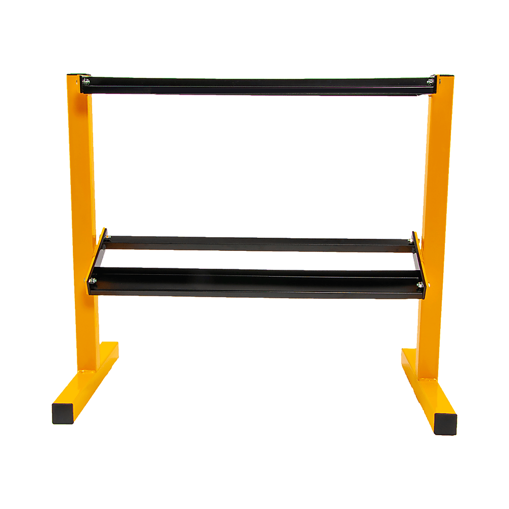 Its 50mm upturn makes it the perfect storage solution for weights 10kg and up. With its sturdy steel frame, it can support up to 400 pounds, so long as the weights are distributed evenly. To protect your floor from dents from all that weight, the rack features rubber feet to protect your floor and prevent slippage. Don't miss out on your chance to organise your workout room with this convenient weight storage rack. Get yours today!