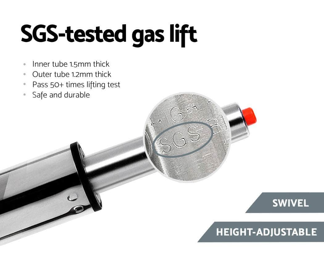 These bar stools are modern, suave, unique and a fun piece of furniture to add to any home! Apart from being pleasing to the eye, they come with fantastic qualities which make them incredibly comfortable. Upholstered in leather, there is an extra thick foam padding for ultimate comfort. The semi-circular footrest ensures relaxed sitting, the omni-directional seat makes for easy turn, the height can be easily adjusted with the SGS-tested gas lift and the large base ensures stability at all times. Lastly, a floor protector under the base helps to keep your pristine floor scratch-free at all times.