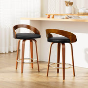 Set of 2 Walnut Wooden Bar Stools- Black Seat