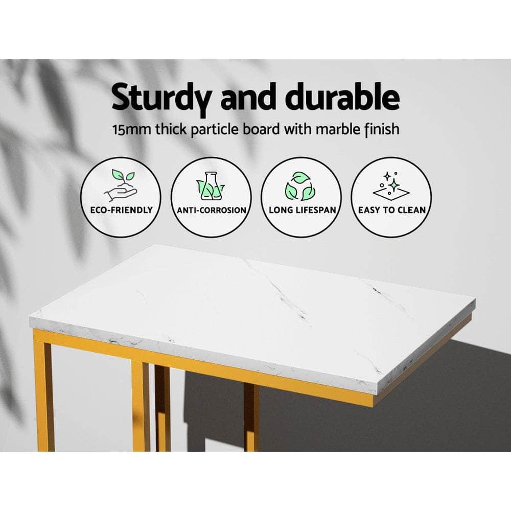 Elevate your living room with this modern and functional coffee table. With its clean lines and smooth edges, our Martha side table will complete the minimalist look and give your space an industrial-style inspired feel. The side table features thick tabletop particle board construction with marble finish and solid metal frame, which ensures longlasting use and ultimate durability. It'll withstand the rigours of everyday use. Equipped with floor protectors, our side table prevents your floors from getting scratches. It has a hollow rectangular base that guarantees optimum stability. This side table has an excellent weight holding capacity and offers good resistance against corrosion. It's also easy to clean. Furthermore, the side table is sleek and elegant, which also helps save space without compromising on its practicality, style, and usefulness. A piece so practically and thoughtfully designed, the Martha makes a must-have piece of furniture in every home. Shop it today.