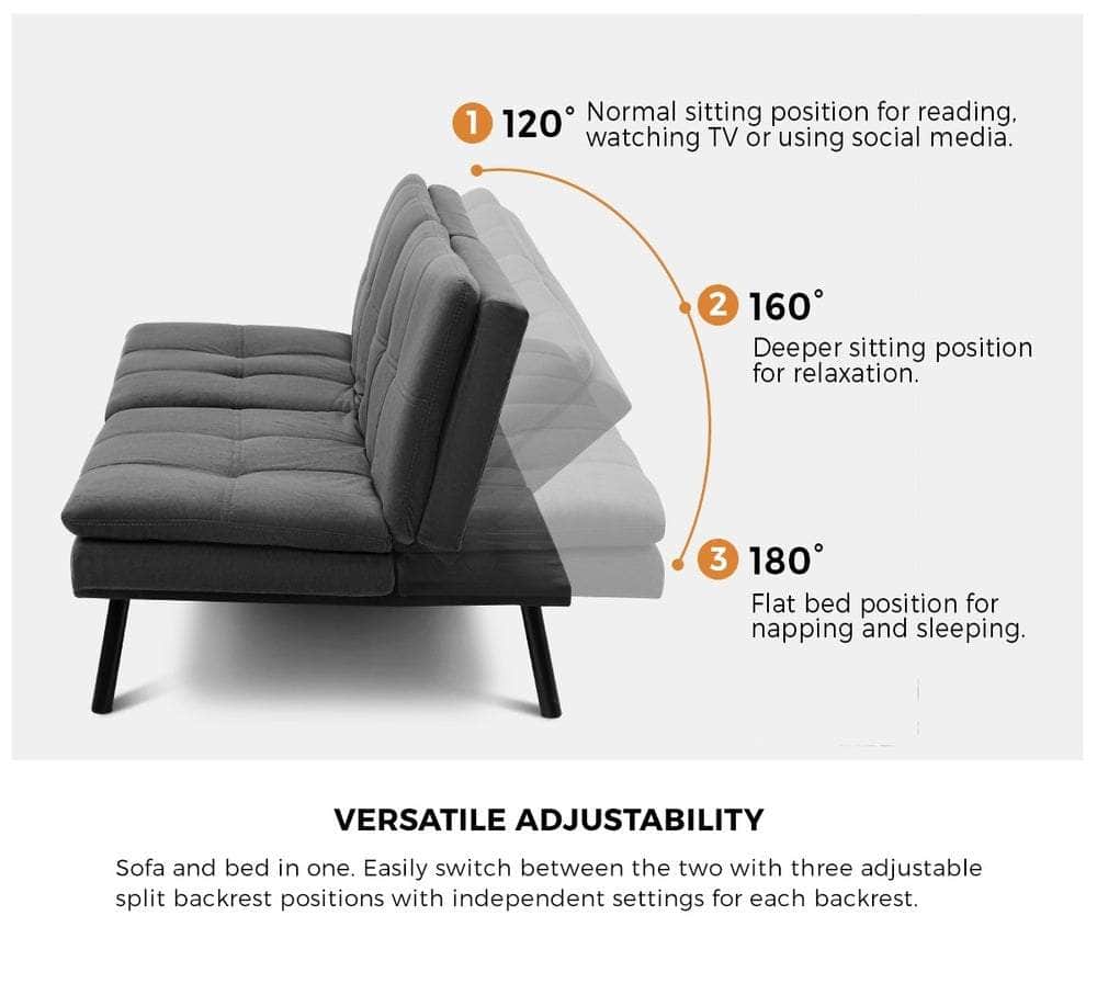 Equipped with a host of adjustable positions for the split backrest and armrests, you can turn your sofa bed into the best seat in the house for watching TV, reading, or keeping up with your social media, or nestle it down for relaxation, napping or sleeping. The permutations for adjustments are simply exceptional. Very useful indeed when space is premium real estate in your home. Likewise, when guests and relatives do drop by for an overnight visit, the sofa bed is ready to accommodate them comfortably with minimum hassles. Just don't let them get too comfortable as they are reasonably apt to be with this sofa marvel.