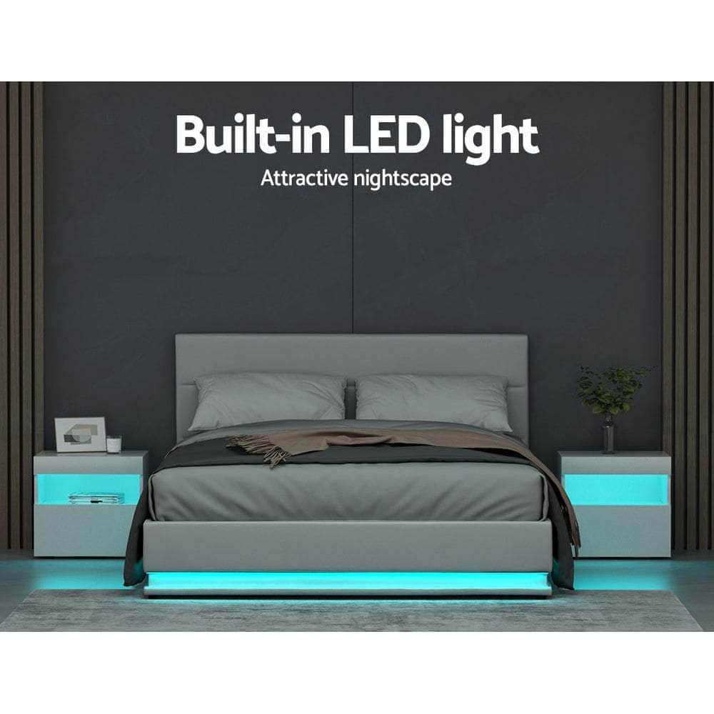 When is a bed more than a bed? When it uses our LUMI Gas Lift Bed Frame. On the outside, this bed frame looks like just any other quality bed frame. Beautifully padded with generous foam and covered in PVC leather. Strong steel frame with high grade steel centre rails, heavy-duty bars and arched slat base. Large and comfortable headboard. But with one easy gas lift of the bed base, the bed frame becomes an instant storage area with acres of space for your bedding essentials. Simply store your extra pillows, bed sheets, cushions and more in the storage compartment and hide them away for the season. Even better, you no longer have to fumble in the dark for a light switch in the middle of the night with this bed frame. It comes with built-in LED lighting that can be customised into 16 different colours and 4 flashing modes to suit your preference. Not only will the illuminated bed frame create a beautiful ambience, it will also save you from buying extra bedside lamps or nightlights. So do not just get any bed frame, get this 3-in-1 bed frame to expand your home storage capacity and light up your nights with just a lift of your hands.