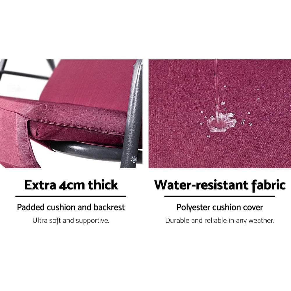Enjoy a lazy afternoon swinging in the sun with the Gardeon Canopy Swing Chair. With ample space for three adults, the chair is perfect for having a chat with friends, reading your favourite book or just lounging the hours away.