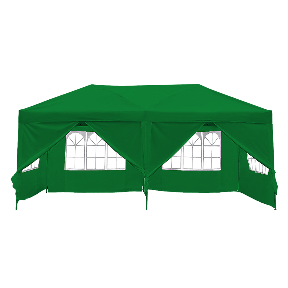 Featuring a thick steel frame and extra heavy-duty cloth material, the 3 x 6m Gazebo - Green, is built to last, and designed to withstand most any weather condition. Beyond the classic tent design, 4 walls are included - for added privacy, shade, and protection from the elements. The 3 x 6m Gazebo - Green, has the large dimensions, sturdy construction, and versatile wall features you need to beat the heat and make your next outdoor event a special one.