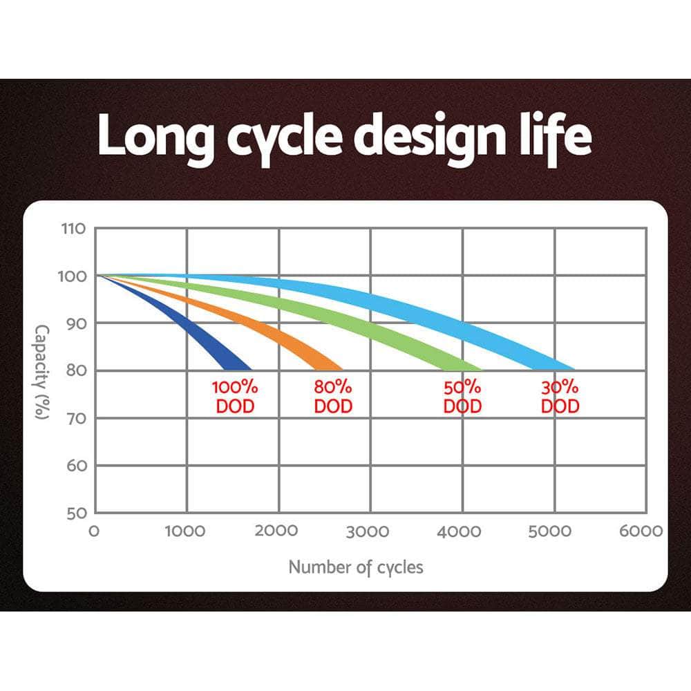 There is nothing worse than needing to be somewhere and your car battery is dead. Or, you need to power your camper on your latest road trip. When you need some emergency power, nothing beats the power of a Giantz Lithium Battery. With a maximum cycle life of 5000 cycles and a build life of around 20 years, youre sure to be covered in any emergency power situation. You can charge a full range of devices, from 4WD vehicles to portable fridges. No need to worry about safety either; the box comes with over current protection, short circuit protection, overheating protection and built-in BMS that will send a warning and take measures to protect the battery under abnormal circumstances. It is also spill-resistant, leak-resistant and non-gassing. It supports multiple serial and parallel connections. The battery is designed for use outdoors with a wide discharge temperature range and has a longer storage life for your convenience. A Giantz Lithium Battery is a must-have piece of equipment for any car owner, whether youre just starting out or an experienced roadster. Instead of waiting for roadside assistance, you can take control of your life and be back on the road within minutes. Get yours today.