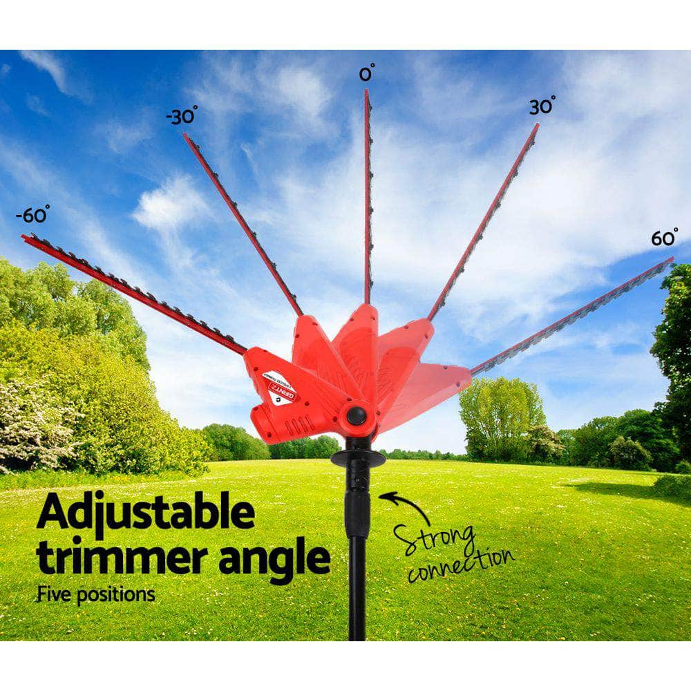 The Chainsaw has an auto oil-lubrication function that prevents the tool from running dry, and you can easily monitor the oil level through the oil level window located on the side of the unit. Additionally, an allen key is provided for easy chain adjustments. The Trimmer features five different angle settings to help you maneuver around corners and odd angles with ease. You can also extend your reach up to 3.5m with the bonus 0.9m extension pole.