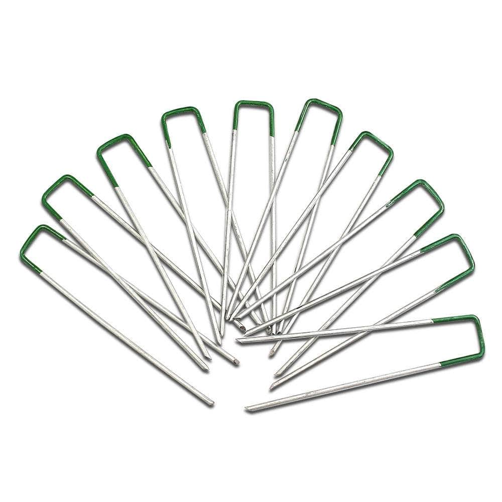 Constructed from galvanized steel, the Synthetic Grass Pins are strong and durable with corrosion-resistant properties. Each pin is 3mm thick and measures 150mm long with a 30mm U-shape top that sits above the ground. You only need one pin for every 30cm to 50cm of artificial turf and is ideal for all types of synthetic turf. Better still, you can also use the Grass Pins to pin down weed mats, frost fleece or even use them as tent and tarpaulin pegs.