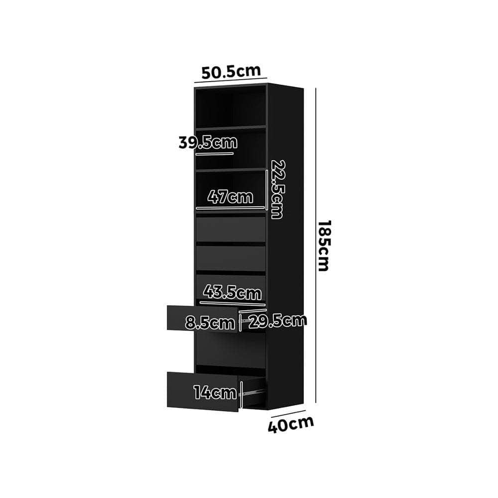 Designed to maximise space and functionality, this unit is perfect for those who need a modern storage solution that integrates with their home decor. With its built-in design, this unit is great to fit your unique storage requirement and space limitations. With its ample storage of drawers and adjustable shelves, it's perfect for storing a variety of items, from clothing to accessories and linens.
