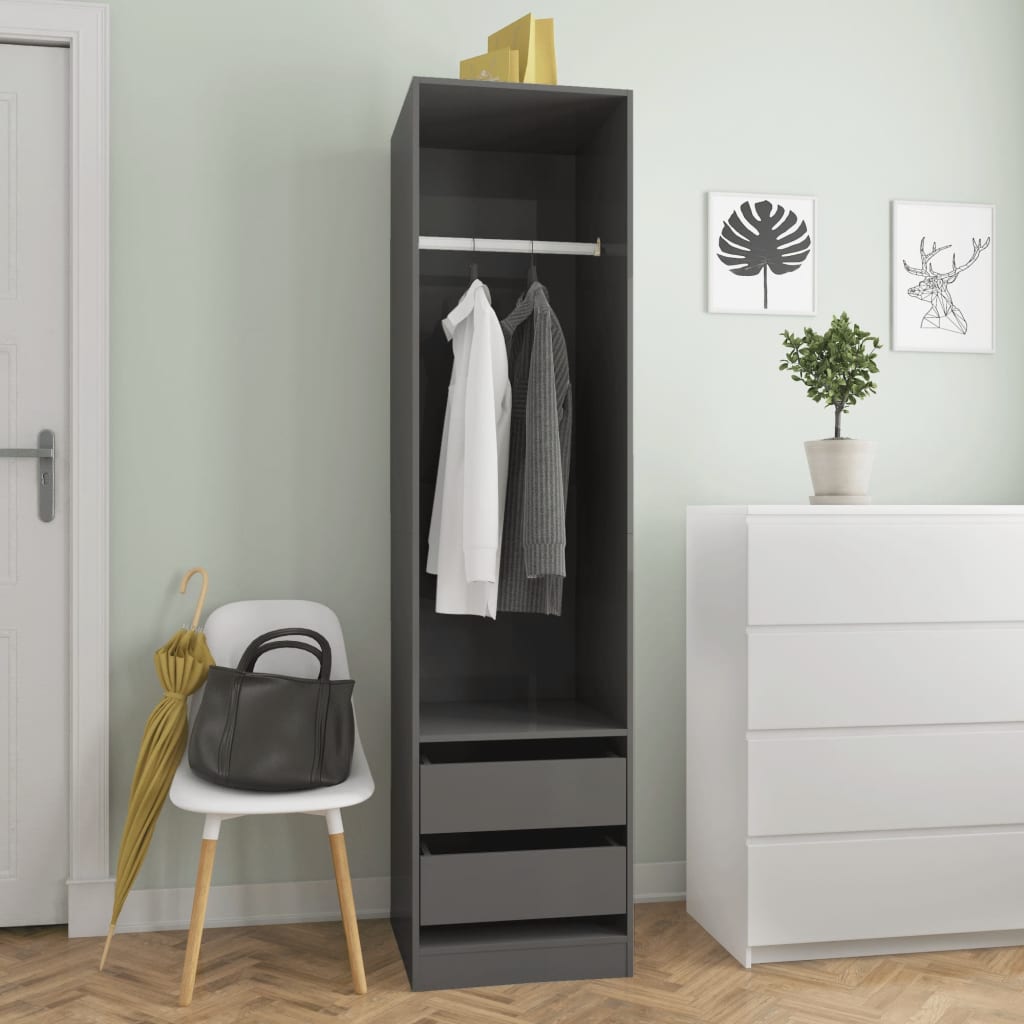 This compact wardrobe makes your clothes or daily accessories easy to access. It will provide a perfect storage solution and add chic touch to your existing home. This wardrobe is made of board, which ensures it sturdiness, durability and long service life. It includes 2 drawers and 1 large open compartment with a hanging rod, offering you ample space both for your longer outfits and other folded clothes or accessories, such as sweaters, jeans, hats, hand bags, etc. The product is easy to clean. This wardrobe is easy to assemble.