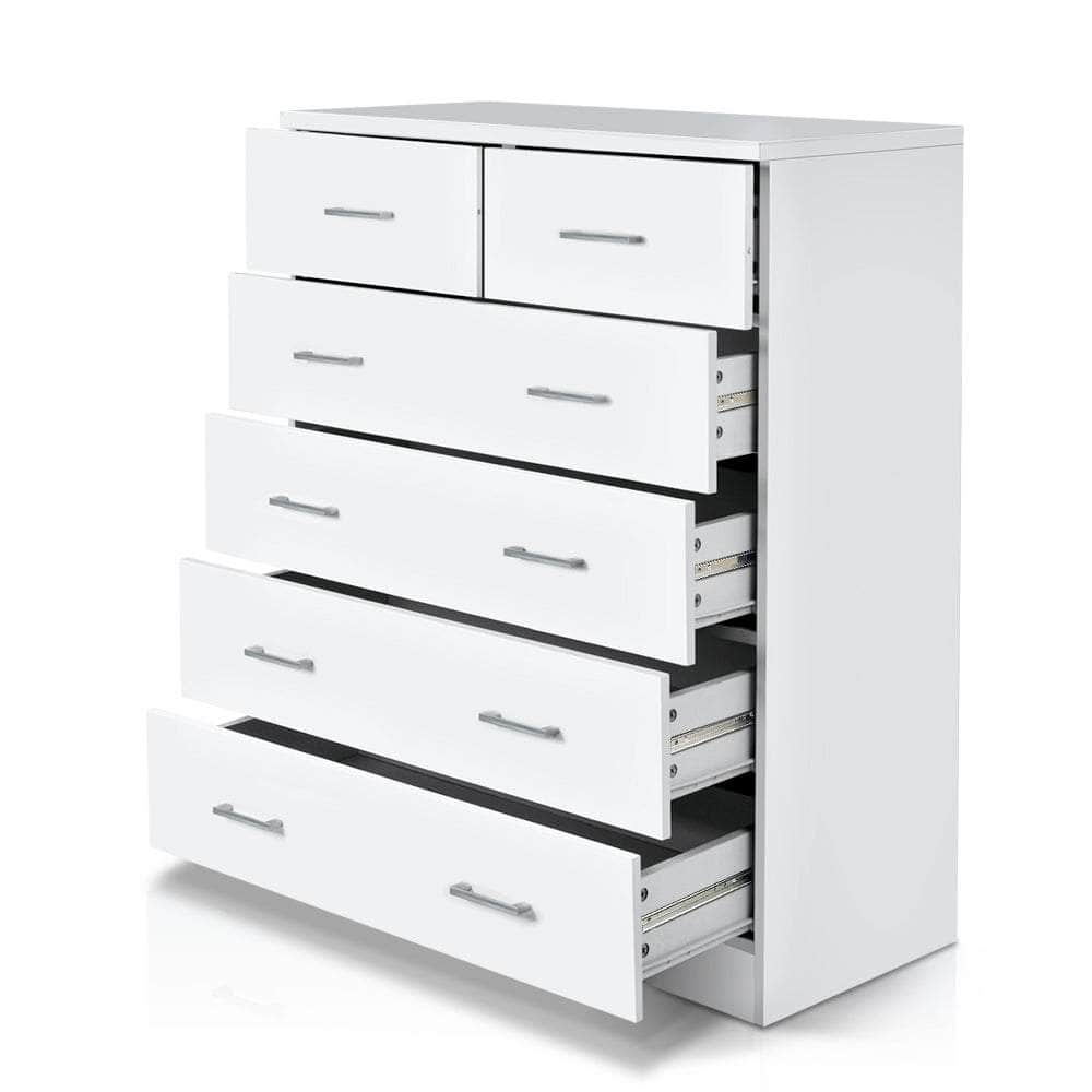 Practical and handsome, our 6-Drawer Tallboy is perfect for those looking for extra storage space for your home. Contemporary and simply designed, this beauty features a flawless melamine finish with elegant handles that will easily match your home d��cor. Made with high density particle board and coated metal runners, the tallboy works ever so smoothly with minimum hassle. Not least, it provides plenty of storage space with six generous-sized drawers for all your personal essentials and more.