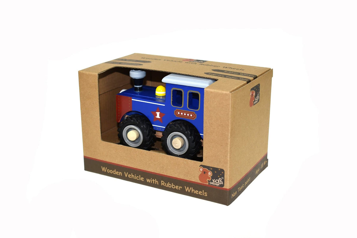 • A beautifully made wooden train with rubber wheels and a clean finish. This product moves smoothly along most surfaces and is convenient to carry around. A great little push along toy with a good solid wood, non toxic paint used.