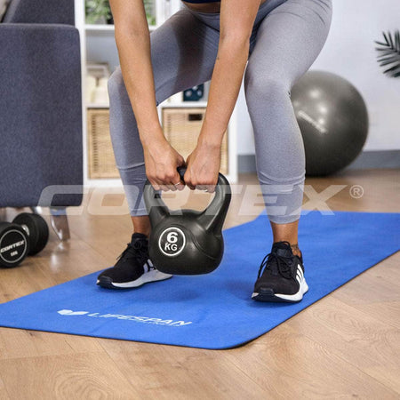 Our economical kettlebells are cement encased in heavy duty plastic for excellent durability. The plastic encasing minimises damage to flooring, and has a smooth surface for good feel and comfortable grip.