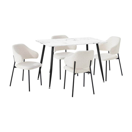 Immerse yourself in the epitome of modern elegance with our Dining Table and Sherpa Dining Chairs Set by . The sleek lines of the contemporary dining table set the stage for a dining experience that seamlessly blends sophistication with comfort. Paired with our sumptuous Sherpa Dining Chairs, the set becomes a statement piece that captures attention and admiration.