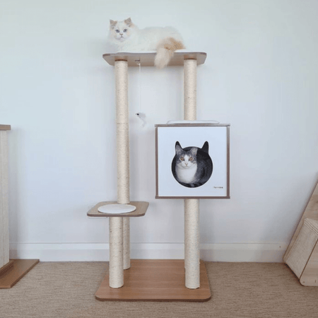 Material: Wooden laminate construction, Plush pads, sisal scratching poles